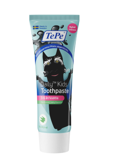 TePe Daily™ Kids Sommerskygge er en skånsom hverdagstandpasta med en alderssvarende mængde fluor (1000 ppm). Tandpastaen har en mild pebermyntesmag.