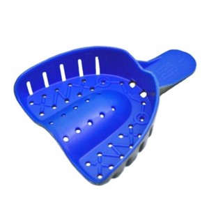 Blå, stabil perforeret aftryksbakke i plastik til engangsbrug. Nem at trimme og justere. Nr. 3 - medium OK.