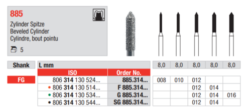 885, Spids Cylinder, FG, str. 012, standard, 5 stk.