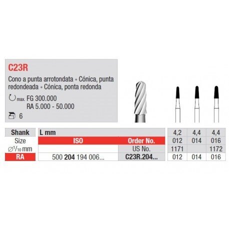 C23R, Afrundet Konisk, RA, str. 014, 5 stk.