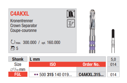 C4AKXL kronedeler m/tværskær, FGL, str. 012, 5 stk.