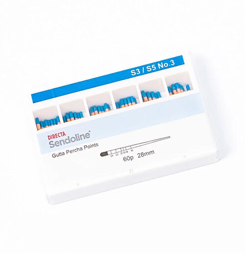 Sendoline S3/S5 Gutta Percha points med længdemarkeringer for mere præcis og bekvem brug. De er specielt designet til at matche den kanalform, der er skabt med Sendoline S3-systemet og S5-systemets S5 sterile roterende file.