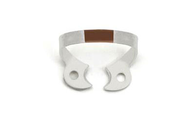 Farvekodet og fleksibel kofferdamklamme i høj kvatlitet rustfrit stål med mat overflade, der forhindrer genskær fra OP-lampen.