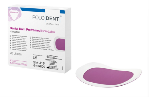 Forformet, latexfri kofferdam i medium størrelse. Egnet til patienter med latexallergi. Den forformede ram gør påføringen hurtig og nem.