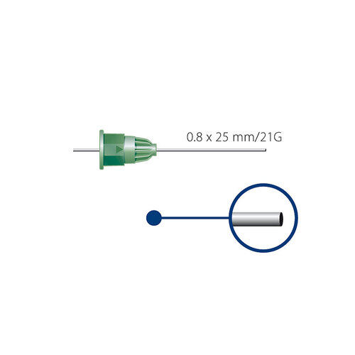 Steril engangs kanyle med lige afskåret stump metalkanyle, som kan bøjes.
