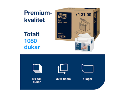 Giv dine patienter ekstra omsorg med den stærke og bløde Tork Premium Soft Vaskeklud. Ideel til patientvask med vand og mild sæbe.