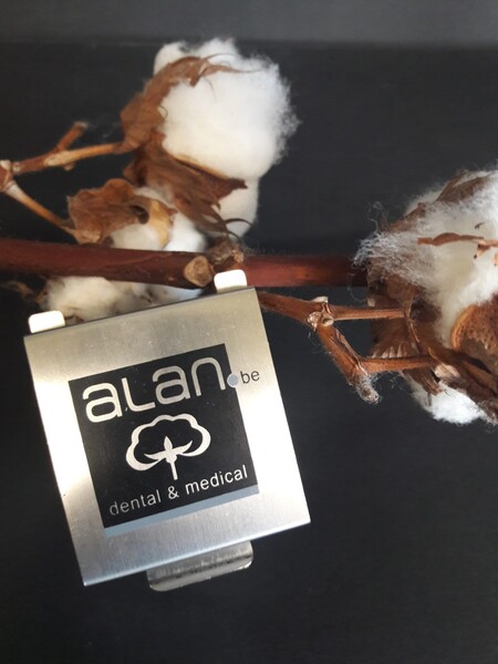 Dispenser med låg, der passer til alle størrelser pakninger af Alan usterile vatpellets pakket i æske.