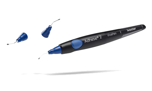 Takket være den blå DC-appliceringsspids muliggør Adhese 2 pålidelig dobbelthærdende påføring direkte fra VivaPen, hvilket gør det egnet til lyshærdende anvendelser, såvel som til kliniske tilfælde, hvor effektiv lyspolymerisering ikke kan sikres, såsom adhæsiv cementering af indirekte restaureringer.