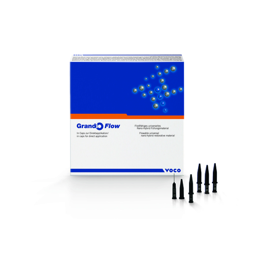 Grandio Flow er en flydende lyshærdende komposit til alle restaureringsindikationer. Grandio Flow er således universel i sin anvendelse. Det er også en meget pålidelig og veletableret restaureringsform til indikationstilpasset behandling af alle kavitetsklasser og anvendelsesområder. Grandio Flow kombinerer alle fordelene ved nano-hybridkompositten, som tandlæger værdsætter i sine materialeegenskaber, men den er også stadig flydende.