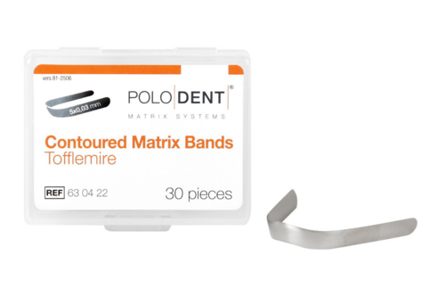 Forkonturerede Tofflemire matricebånd af rustfrit stål.