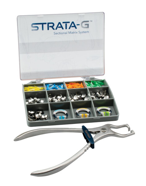 Strata-G™ sektionsmatricesystemet er designet til at skabe tætte, anatomisk korrekte kontakter på klasse II kompositrestaureringer.