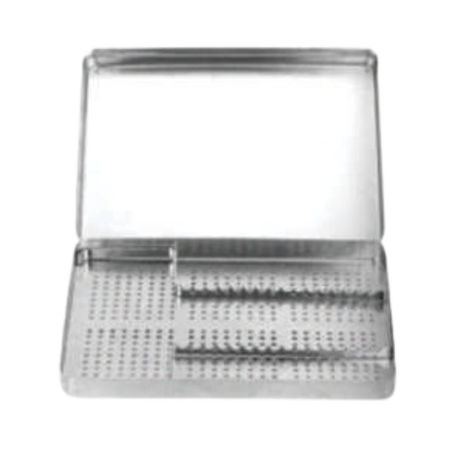 Perforeret instrumentbakke med perforeret låg samt instrumentindlæg til 16 instrumenter. Alt i rustfrit stål.