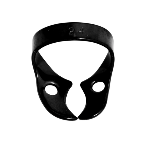 Black-coated: Den sorte coating på kofferdamklammen reducerer blænding og forbedrer synligheden under behandlingen.