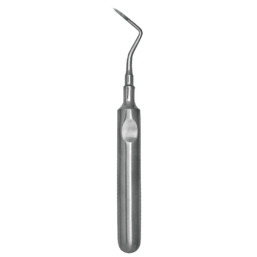 Heiderbrink rodspidselevator Fig. 3 er designet til kontrolleret tandelevering og luksation under ekstraktionsprocedurer. Dens præcist formede arbejdsende giver optimal gearing, samtidig med at traume på det omgivende væv minimeres. Det ergonomiske håndtagsdesign sikrer et behageligt greb og fremragende taktil kontrol, hvilket gør den ideel til både rutinemæssige og komplekse ekstraktioner.