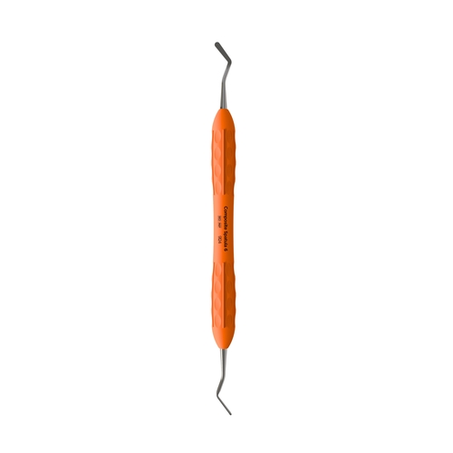 Kompositspatel 6 er designet til håndtering, spredning og konturering af kompositmaterialer under restaureringsprocedurer. Dens flade, fleksible blad muliggør jævn tilpasning af kompositmaterialet til kavitetsvægge og -overflader, hvilket gør den ideel til anteriore og posteriore restaureringer, der kræver præcision og kontrol.
