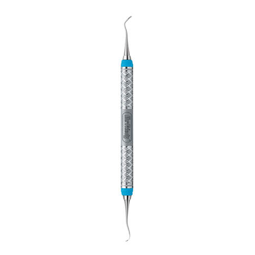Dobbeltendet 1 Nevi™ Anterior scaler med et supertyndt, anterior-buet segl. En aflang diskformet-ende til fjernelse af anterior lingual misfarvninger og fjernelse af calculus.