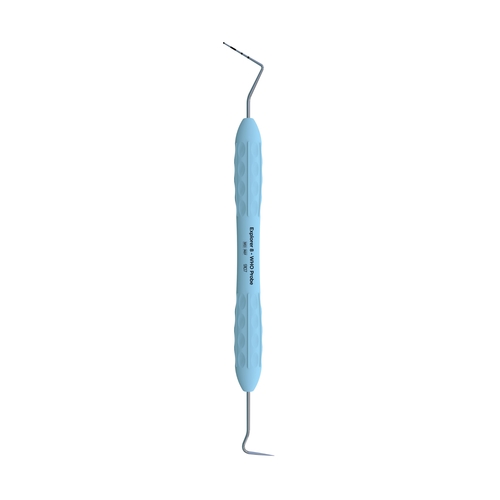 Sonde 8 – WHO CP pochemåler er et dobbeltendet diagnostisk instrument, der kombinerer en fin sonde med en WHO pochemåler med en 0,5 mm kugleende. 8-enden er ideel til at detektere caries og evaluere restaureringer, mens WHO-enden er mærket til standardiseret parodontal screening og registrering (PSR). Kuglespidsen sikrer skånsom sondering, hvilket hjælper med at reducere vævstraume under undersøgelser.