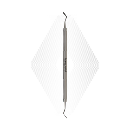 Kompositspatel 6 er designet til håndtering, spredning og konturering af kompositmaterialer under restaureringsprocedurer. Dens flade, fleksible blad muliggør jævn tilpasning af kompositmaterialet til kavitetsvægge og -overflader, hvilket gør den ideel til anteriore og posteriore restaureringer, der kræver præcision og kontrol.