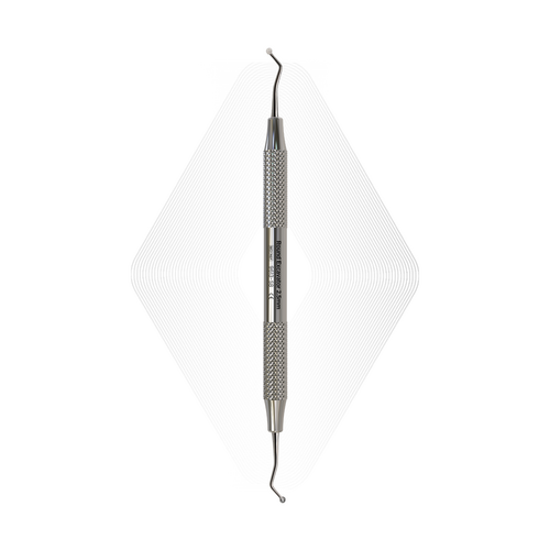 Den runde ekskavator på 2,5 mm er designet til manuel fjernelse af blødt dentin, rester og karieret væv fra kavitetspræparater. Dens runde, skeformede arbejdsende tilpasser sig kavitetens naturlige konturer, og muliggør kontrolleret skæring og effektiv ekskavering uden at beskadige den omgivende tandstruktur.