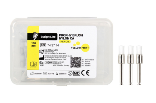 Yellow Point Budget Line Prophy Nylon pudsebørsten tilbyder en fremragende balance mellem skarp pris og pålidelig kvalitet.