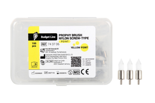 Yellow Point Budget Line Prophy Brushes Nylon fås med både skrue- og RA-tilslutning.