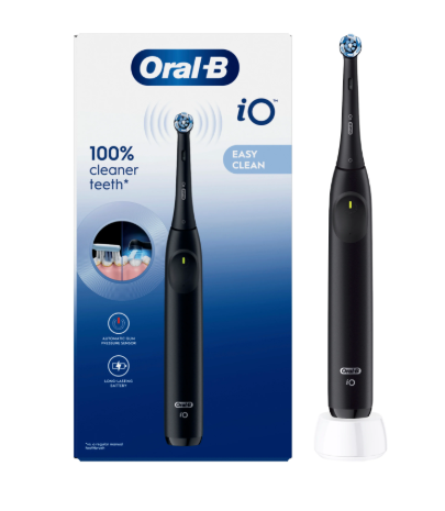 Oral-B iO2 elektriske tandbørstes runde børstehoveds blide mikrovibrationer giver en professionel ren følelse hver dag. Den smarte tryksensor hjælper med at børste med det rigtige tryk, ikke for hårdt og ikke for blødt. Bare et tryk på en knap.