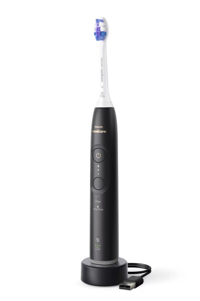 - Denne elektriske Sonicare-tandbørste har en lysring i bunden, der fortæller én, om man trykker for hårdt. Man skal blot slække presset, når den lyser, for at beskytte tandkødet.