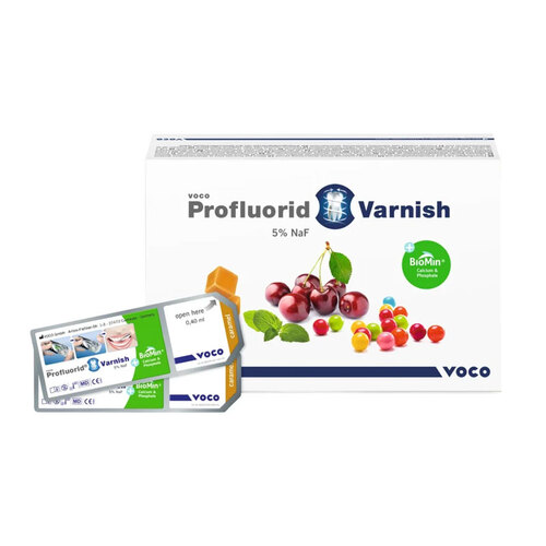 VOCO Profluorid Varnish + BioMin er baseret på VOCO´s desensibiliserende fluorlak VOCO Profluorid Varnish, som har eksisteret i årevis og er gennemprøvet. Nyt i "+ BioMin-versionen" er tilføjelsen af det opløselige bioglas fra BioMin Technologies Ltd. BioMin-bioglasset blev forsket i og udviklet i samarbejde med professor Robert Hill ved Queen Mary University i London.