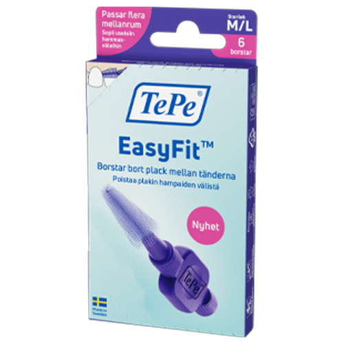 TePe EasyFit™ mellemrumsbørstens koniske form giver mulighed for at rense i mellemrum af forskellig størrelse med den samme børste. Børstens bløde spids gør børstningen blødere og mere behagelig.